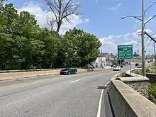 When Pennsylvania first legislated routes in 1911, the portion of Ridge Pike between Pottstown and Norristown was designated as part of Legislative Route 146.[8] The section of Ridge Pike west of Norristown was designated as US 120 when the U.S. Highway System was created in 1926; US 120 was designated concurrent with PA 13.[9][10] In 1927, US 422 replaced the US 120/PA 13 designation along the portion of Ridge Pike between Pottstown and Norristown.[11] Ridge Pike was widened to a multilane road by 1940.[12] In the 1930s, US 422 was rerouted to follow Ridge Pike and Ridge Avenue between Church Road in Barren Hill and US 1 Byp./US 13 Byp. (City Line Avenue/East River Drive) and US 309 (Lincoln Drive) in Philadelphia.[13] In the 1940s, US 422 Alt. was designated along Ridge Pike and Ridge Avenue from US 422 (Airy Street) in Norristown east to US 1 Byp./US 13 Byp. and US 309 in Philadelphia, replacing the US 422 designation along the portion of road east of Barren Hill.[14] US 422 switched alignments with US 422 Alt. east of Barren Hill in the 1950s; this resulted in US 422 again being designated along Ridge Pike and Ridge Avenue between Barren Hill and Philadelphia.[15]