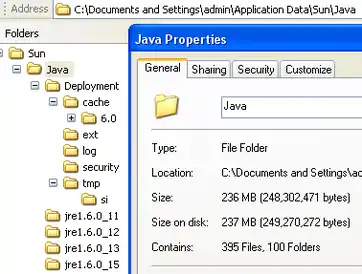 Example of third-party software (Sun Microsystems Java) storing temporary files and software updates in the roaming profile. The bloated roaming profile increases login and logout times. The stored updates shown are unnecessary after installation, yet they are not deleted.