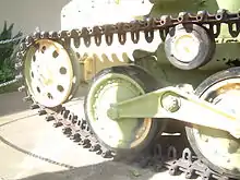 Tank tracks provide even more traction than a six-wheeled robot. Tracked wheels behave as if they were made of hundreds of wheels, therefore are very common for outdoor and military robots, where the robot must drive on very rough terrain. However, they are difficult to use indoors such as on carpets and smooth floors. Examples include NASA's Urban Robot "Urbie".[65]