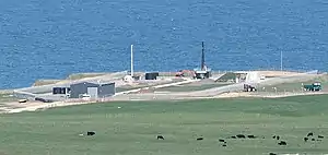 Launch Complex 1 features a 50-tonne (49-long-ton; 55-short-ton) launch platform and tower, a hangar for the Electron rockets, and storage tanks for liquid oxygen and kerosene.[4] During the test phase of launch operations, which began in May 2017,[2][5] the exclusion zone would likely be an eight-kilometre (five-mile) radius from the pad, and would reduce in size once the site became commercially operational.[6]