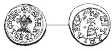 After the coup, the division of the kingdom into two factions, with the southwest (the provinces of Lusitania and western Carthaginiensis around the capital Toledo) in Roderic's hands and the northeast (Tarraconensis and Narbonensis) in the hands of Achila is confirmed by archaeological and numismatic evidence. Roderic's twelve surviving coins, all bearing the name Rvdericvs, were minted at Toledo, probably his capital, and "Egitania", probably Idanha-a-Velha.[12] The regions in which the coins have been discovered do not overlap and it seems highly probable that the two rulers ruled in opposition from different regions. It is unknown to whom the provinces of Gallaecia and Baetica fell.[12] That Roderic and Achila never appear to have come into military conflict is probably best explained by the preoccupation of Roderic with Arab raids and not to a formal division of the kingdom.[13]