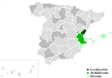The Diocese of Segorbe-Castellón (Latin: Dioecesis Segobricensis-Castillionensis; Valencian: Diòcesi de Sogorb-Castelló) is a Latin Church diocese of the Catholic Church located in north-eastern Spain, in the province of Castellón, part of the autonomous community of Valencia. The diocese forms part of the ecclesiastical province of Valencia, and is thus suffragan to the Archdiocese of Valencia.