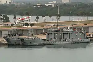 ![]() Runnymede-class large landing craft docked at Port Canaveral, Florida | |