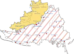 Map showing the former core of the administration, in dark blue (now liberated)