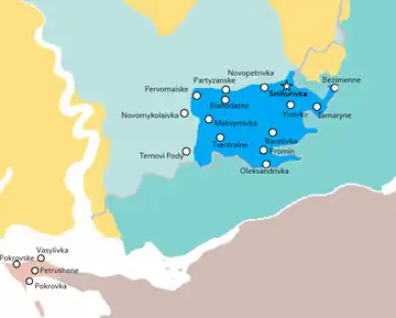 On 30 September 2022, Russia declared that it had annexed Kherson Oblast,[lower-alpha 6] claiming that the people of "Snihurivka Raion" (a Ukrainian district that was abolished and merged with Bashtanka Raion in 2020), including the city of Snihurivka, had voted to join Kherson Oblast.[1] Meanwhile, Russia also annexed the outer portion of the Kinburn Peninsula—a semi-exclave of Mykolaiv Oblast into Kherson Oblast (the inner portion of the peninsula is part of Kherson Oblast according to Ukrainian law).