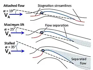 Adjustment of the angle of a fore-and-aft sail with respect to the apparent wind is controlled with a line, called a "sheet". On points of sail between close-hauled and a broad reach, the goal is typically to create flow along the sail to maximize power through lift. Streamers placed on the surface of the sail, called tell-tales, indicate whether that flow is smooth or turbulent. Smooth flow on both sides indicates proper trim. A jib and mainsail are typically configured to be adjusted to create a smooth laminar flow, leading from one to the other in what is called the "slot effect".[79]