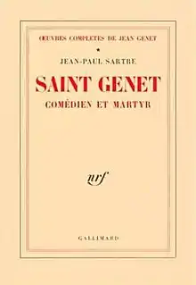 Saint Genet, Actor and Martyr (French: Saint Genet, comédien et martyr) is a book by the French philosopher Jean-Paul Sartre about the writer Jean Genet, especially on his The Thief's Journal. It was first published in 1952. Sartre described it as an attempt "to prove that genius is not a gift but the way out that one invents in desperate cases."[1] Sartre also based his character Goetz in his play The Devil and the Good Lord (1951) on his analysis of Genet's psychology and morality.[2] Sartre has been credited by David M. Halperin with providing, "a brilliant, subtle, and thoroughgoing study of the unique subjectivity and gender positioning of gay men".[3]