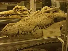 Saltwater crocodile skull from The Museum of Zoology, Saint Petersburg. Note the considerably more slender skull of a gharial in the background.