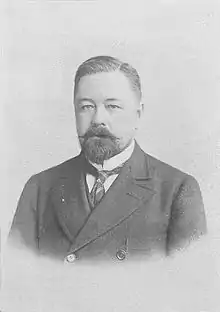 Count Sergei Yulyevich Witte (Russian: Серге́й Ю́льевич Ви́тте, romanized: Sergey Yulyevich Vitte, IPA: [sʲɪrˈɡʲej ˈjʉlʲjɪvʲɪtɕ ˈvʲitʲːɪ];[1] 29 June [O.S. 17 June] 1849 – 13 March [O.S. 28 February] 1915), also known as Sergius Witte, was a Russian statesman who served as the first prime minister of the Russian Empire, replacing the emperor as head of the government. Neither a liberal nor a conservative, he attracted foreign capital to boost Russia's industrialization. Witte's strategy was to avoid the danger of wars.[2]
