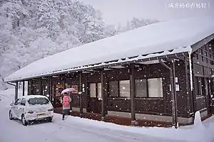 As a result, the village moved ahead with the establishment of a new bus station on the site formerly home to the Shirakawa Clinic.[5] An ordinance outlining the requirements for the station's management was completed on 21 June 2016, titled Ordinance on the Establishment and Management of the Shirakawa-gō Bus Terminal. A ceremony was held on 29 September 2016 marking the station's completion, and it opened for operation on 1 October 2016. The bus stop in the Seseragi Park parking lot and the nearby Ogimachi bus stop were removed as the station was opened.[6]