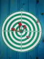 - Paper target — ordinary disposable paper-based target with painted pattern for bullseye shooting, may be made from paperboard/cardboard, corrugated board or even fiberboard, and usually single-use and purchased in large quantities. Requires mounting onto a rack, a hanger, a wire or a backboard during use.