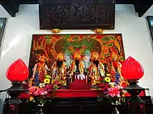 The Shuixian Zunwang are worshipped as protectors of ships in transit.[5] A shrine in their honor was included on most Taiwanese vessels during the imperial era; even today, most Taiwanese harbors include temples to them.[1] There are shrines dedicated to the deities in many Mazu temples.