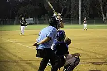 The game was first played in Australia in 1939, having been introduced to the country by Gordon Young of Canada, who at the time was the director of physical education in New South Wales.[1][2] Prior to the Second World War, vigoro was one of the sports played by women in Australia. With the introduction of softball during the war, the game fell out of popularity and was replaced with softball in the eastern states.[3] The game was introduced to a wider audience in 1942 by American nurses stationed in the country during the war.[4][5] Their matches were organized by US Army Sargeant William Duvernet.[1][5] The Victorian Women's Softball Association was created two years later in 1944.[4] The association at the time of its founding had 20 teams, 250 members and staged regular competitions.[4] Women's participation in softball led to a decline in the number of women participating in cricket at this time.[4][6] A Queensland organisation was created in 1946 by the American Mack Gilley.[5][7] By 1946, the big states had their own association. In 1947, at the behest of Queensland, the first interstate championships were held in Brisbane, with the Victorians claiming victory.[1][8] Only New South Wales, Victoria and Queensland competed at the innaurgal event.[5]