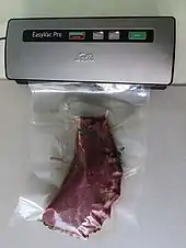 From a culinary viewpoint, the exclusion of air is secondary, but this has practical importance. It allows cooked food to be stored, still sealed and refrigerated, for considerable times, which is especially useful for the catering industry, and it excludes oxygen from food that requires long cooking and is susceptible to oxidation, e.g., fat on meat, which may become rancid with prolonged exposure to air.[10] It also improves the transfer of heat between the water bath and food, without the thermal insulating properties of any trapped air in the bag.