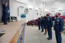 Prior to the activation of Space Training and Readiness Command (STARCOM), the 3423 TCHTG was redesignated as Space Delta 13 (DEL 13) on 19 August 2021. During the activation of STARCOM on 23 August 2021, DEL 13 was one of the five deltas activated as part of the new field command.[6] A ceremony was held on 13 September 2021 at Maxwell Air Force Base, Alabama, to signify the activation of DEL 13.[7] It was formed by consolidating various space education units such as the National Security Space Institute (NSSI) and the Forrest L. Vosler Non-Commissioned Officer Academy (Vosler NCO Academy) and two detachments that serve as liasions to the United States Air Force Academy and Air University. Additionally, the 13th Delta Operations Squadron was activated on 15 September 2021 to provide operational support to DEL 13.[8]