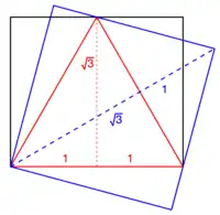 The square root of 6 appears in various other geometry contexts, such as the side length for the square enclosing an equilateral triangle of side 2 (see figure).
