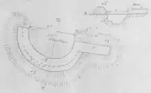 Viewing across the open eastern flank was possible from the top of the "curiously shaped heaps of broken earth" near Shellal.[39] Two tels, indicating possible sites of ancient cities, stood high above the plain and also provided excellent views. The spectacular, flat-topped Tel el Jemmi, with its perpendicular sides, one side dropping into the Wadi Ghazza, could be seen for miles. It had been used as a lookout during the first battle of Gaza.[41] Tel el Fara, on the Rafa to Beersheba road, was a flat-topped prominence with conical sides 7 miles (11 km) further south, and was approximately 16 miles (26 km) inland from the coast in the centre of the Gaza to Beersheba front line. This large mound, near the Wadi Ghazza at Shellal, was thought to have been built by the crusaders in the 13th century as an observation post; and it gave an "uninterrupted view for several miles northward and eastward."[39] At the base of Tel el Fara huge stone buttresses and several courses of cut stone could be seen at water level.[41][42]