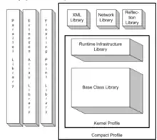 The Compact Profile contains those libraries in the Kernel Profile as well as the Network Library, the Reflection Library and the XML Library.[7]