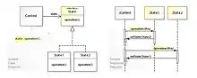 - ↑ "The State design pattern – Structure and Collaboration". w3sDesign.com. Retrieved 2017-08-12.