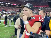 ![]() Bennett at the press conference after the 2023 CFP title game | |