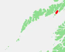 The 35.3-square-kilometre (13.6 sq mi) island has a ferry connection from the northern tip of the island to the village of Digermulen on the neighboring island of Hinnøya. Most of the 16 residents (2017) live in the small fishing village of Brettesnes on the southern tip of the island.[2]