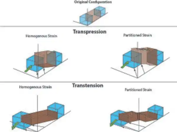 Strain partitioning across the literature is diverse and has been divided into three subdivisions according to the American Geological Institute: