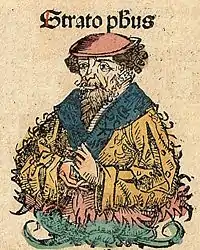 ![]() Strato, depicted as a medieval scholar in the Nuremberg Chronicle | |
