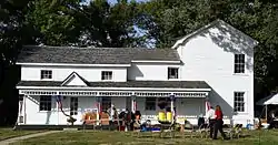 The Strawbridge-Shepherd House is a historic house located at 5255 Shepherd Road in Springfield, Illinois. Saddle and harness maker Thomas Strawbridge built the house for himself circa 1845. The original house was a two-story Greek Revival structure, a popular design choice at the time; it is one of the best-preserved Greek Revival houses in the Springfield area. Key Greek Revival elements of the house include its wide cornice trim resembling an entablature and the pilasters, sidelights, and transom around the front door. An addition from circa 1865 gave the house an "L" shape and added a new kitchen. Civil War veteran Charles M. Shepherd purchased the house in 1883. Shepard made several additions and modifications to the house; many of these added Queen Anne elements, such as the two porches with decorative spindlework.[2]