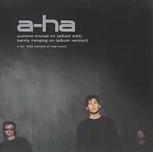 "Summer Moved On" is a song by Norwegian band a-ha, released as the group's first single in more than six years. The lead single from their sixth studio album, Minor Earth Major Sky (2000), the song was released in Europe on 25 March 2000 and was given a UK release on 22 May 2000. It was originally hastily written after a-ha agreed to a one-time reunion at the Nobel Peace Prize concert in 1998. The song became a number-one radio hit in much of Europe, including topping the chart in the band's native Norway. On the song, Morten Harket achieved the European record for the longest note held in a top-40 pop song; he sustains a chest voice note for 20.2 seconds (eight measures).[1]