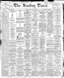 The Sunday Times was founded by W. H. Leighton Bailey.[1] It was first published on 15 November 1885 by Charles Mark Curtiss, and ceased with no. 2389 on 1 June 1930.[2]