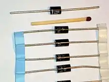 - ↑ Unmatched MOVs have a tolerance of approximately ±10% on voltage ratings, which may not be sufficient.[16] For more details on the effectiveness of parallel-connected MOVs, see § Joule rating