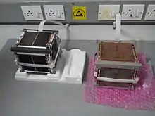 Swayam is a 1-U picosatellite (CubeSat) developed by the undergraduate students of College of Engineering, Pune.[2] They have successfully completed assembly of the flight model having a size of 1-U and weight of 990 grams under the guidance of Indian Space Research Organisation (ISRO) in January 2015. The structural design of the satellite, design of its electronic and control systems as well as the manufacturing of the satellite was carried out by the students. The project was completed over a span of 8 years and more than 200 students worked on it. The Satellite was launched by ISRO on June 22, 2016, along with Cartosat-2C by Polar Satellite Launch Vehicle C-34 from the second launch pad at Satish Dhawan Space Center, Sriharikota, India.[3][4][5] The satellite is to be placed in low Earth orbit (LEO) around Earth at a height of 515 km.[4][6]