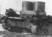 No less than 50 old twin-turreted T-26 tanks of the Transbaikal Military District were converted into artillery tractors from 1941; these vehicles participated in combat with the Japanese Kwantung Army in August 1945.[10]
