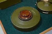 The TM-62 is a Soviet anti-tank blast mine made in many variants. It has a central fuze and typically a 7.5 kilograms (17 lb) explosive charge, but the variants differ greatly in detail. The mine can be laid manually or automatically from a mine laying machine including the PMR-1, PMR-2 wheeled towed mine layers, the GMZ-3 tracked mine laying vehicle and the VMR-2 helicopter mine laying system. The TM-62 can be fitted with the same fuzes as the TM-72, which include MVN-72 and MVN-80 fuzes, which are vibration and magnetism sensitive.