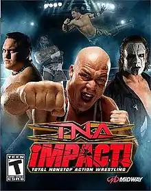 TNA Impact! (stylized as TNA iMPACT!) is a professional wrestling video game based on the professional wrestling promotion, Total Nonstop Action Wrestling (TNA, now known as Impact Wrestling).[2] The console versions of the game were developed by Midway Studios Los Angeles and published by Midway Games. Although the game sold 1.5 million units,[3] financial issues at Midway Games prevented the planned development and release of a sequel. The game was ported to Nintendo DS and PlayStation Portable handset consoles in August 2010 under the title TNA Impact!: Cross the Line, published by SouthPeak Games, who had acquired the TNA license and assets following the collapse of Midway.