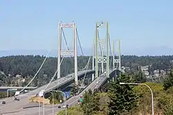 ![]() The bridges in 2015, as seen from the Tacoma side. 1950 bridge on the right, 2007 bridge on the left. | |
