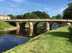 Tadcaster Bridge or Wharfe Bridge spans the River Wharfe in Tadcaster, North Yorkshire, England. The road bridge is believed to date from around 1700. It is the main route connecting the two sides of the town and one of two road crossings in the town, the other being the bridge for the A64 bypass. Tadcaster Bridge partially collapsed on 29 December 2015 after flooding that followed Storm Eva, and reopened on 3 February 2017.[1][2][3]
