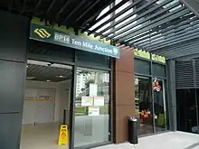 This station was closed from 10 December 2010 to 30 December 2011 for retrofitting works due to the closure and redevelopment of Ten Mile Junction shopping mall (now known as Junction 10), marking the first time an LRT or MRT station to be closed in Singapore after opening. Bukit Panjang LRT Service C, which operates from Ten Mile Junction, was also suspended during that time.[1] On 30 December 2011, this station was reopened for revenue service, coinciding with the soft launch of the newly redeveloped Junction 10 shopping mall. Despite the mall's renovation, the old station's interior design was retained.[2]