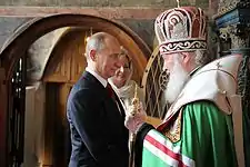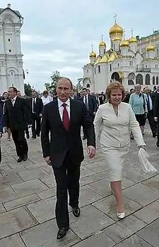 After all this, President Putin and his wife went to the Cathedral of the Annunciation, where a prayer service in the service to the Fatherland was held.[7]
