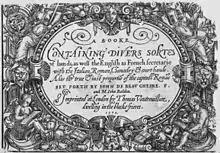 As Vautrollier had registered two books of "copies" or sample alphabets with the Stationers' Company in 1569, it is possible that this volume combined originally separate works by the writing-master John de Beauchesne and by Master John Baildon, a curate of St Mildred in the Poultry.[1]