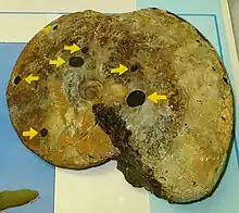 - ↑ Marianella Talevi; Bruce Rothschild; Marta Fernández; Marcelo Reguero; Matías Mitidieri (2019). "A pathological scapula in a mosasaur from the upper Maastrichtian of Antarctica: evidence of infectious arthritis and spondyloarthropathy". Cretaceous Research. 100: 1–4. Bibcode:2019CrRes.100....1T. doi:10.1016/j.cretres.2019.03.024. hdl:11336/125089. S2CID 135367471.