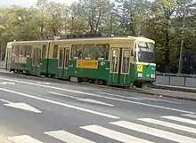 The fully low-floor Variotram units, acquired in 1998–2003 from Adtranz (later Bombardier) and built by Transtech Oy in Otanmäki, proved to be unreliable, causing a shortage of operable trams. Starting in 2004, HKL purchased ten Duewag series second-hand trams from Mannheim in Germany to cover for the shortage.[9] Eventually arrangements were made with Bombardier to keep a sufficient number of the units in operation. All of the Duewag units were either withdrawn or relegated to charter service by the end of 2014. All Variotrams were taken out of use in 2018 because of the problems.[10][11]