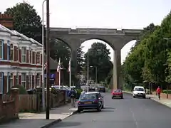 The Ipswich wet dock was dug in 1842 to accommodate booming commercial coastal trade.[12] The first railway station opened in Ipswich in 1846 providing services to Colchester and London using the Great Eastern Main Line and to Bury St Edmunds using the Ipswich to Ely Line. Services to Norwich started in 1849, to Cambridge in 1851 and in 1859 the East Suffolk Line provided services as far as Great Yarmouth. The station moved to its current location in 1860. The Highway Act 1835 had introduced legislation placed the responsibility of maintenance of roads with the parish surveyor (and also introduced a number of 'rules of the road' such as riding on the left). The Ipswich to South Town and Bungay Turnpike trust was wound up in 1872 following the arrival of the railway. The new county councils took over responsibility for roads and bridges in 1889 following the Local Government Act 1888.[28]