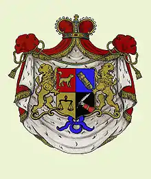- ↑ Любимов С.В. Титулованные роды Российской империи: Опыт подробного перечисления всех титулованных российских дворянских фамилий, с указанием происхождения каждой фамилии, а также времени получения титула и утверждения в нем / Гос. публ. ист. б-ка России. – М.: ФАИР-ПРЕСС, 2004. с. 368