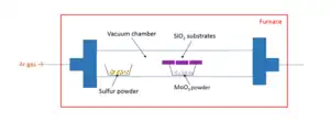 2D semiconductor materials are often synthesized using a chemical vapor deposition (CVD) method. Because CVD can provide large-area, high-quality, and well-controlled layered growth of 2D semiconductor materials, it also allows synthesis of two-dimensional heterojunctions.[13] When building devices by stacking different 2D materials, mechanical exfoliation followed by transferring is often used.[4][6] Other possible synthesis methods include electrochemical deposition,[14][15] chemical exfoliation, hydrothermal synthesis, and thermal decomposition. In 2008 cadmium selenide CdSe quasi 2D platelets were first synthesized by colloidal method with thicknesses of several atomic layers and lateral sizes up to dozens of nanometers.[16] Modification of the procedure allowed to obtain other nanoparticles with different compositions (like CdTe,[17] HgSe,[18] CdSexS1βx alloys,[19] core/shell[20] and core/crown [21] heterostructures) and shapes (as scrolls,[22] nanoribbons,[23] etc).