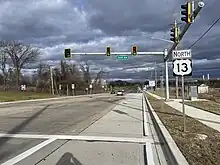 ![]() ![]() ![]() | Right-in/right-out intersection southbound; northern terminus of US 13 Bus. | ||||