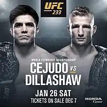 - ↑ Staff (2018-11-26). "Henry Cejudo vs. T.J. Dillashaw flyweight title fight official for UFC 233 in Anaheim". mmajunkie.com. Retrieved 2018-11-27.