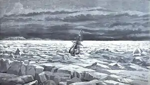 Corwin caught and lifted by ice floes, Bering Sea, 1880