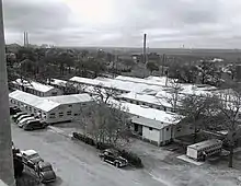 Southwestern Medical College as it appeared at its founding in the 1940s. Animal facilities are seen in the lower right