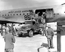 The squadron was originally formed as VJ-6M at Marine Corps Air Station Quantico, Virginia in 1922.[1] Re-designation as VMJ-1 came on July 1, 1937, and again as VMJ-152 on July 7, 1941.[3] VMJ-152 became the first Marine Corps squadron to field the new R4D-1 aircraft in the first part of 1942.[4] The squadron subsequently moved to San Diego a few months later and shipped out to the South Pacific on October 10, 1942. The unit joined Marine Aircraft Group 25 on October 25, 1942, and immediately began flying missions in support of Marines engaged in the Battle of Guadalcanal.[5]